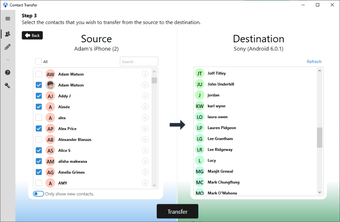 Select source and destination: Choose which devices you are transferring contacts from and to.